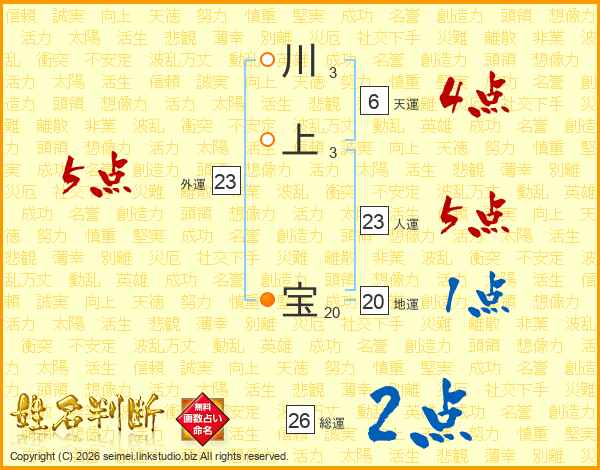 川上宝さんの総運は26画の2点!