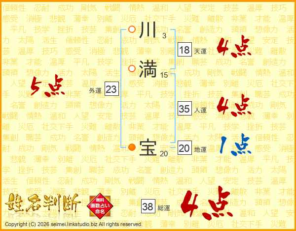 川満宝さんの総運は38画の4点!