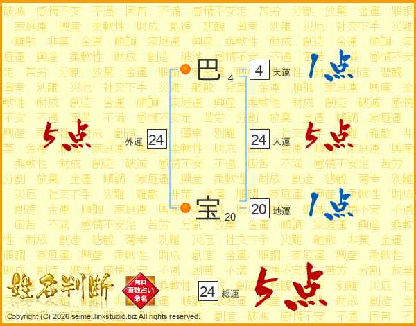 巴宝さんの総運は24画の5点!