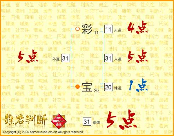彩宝さんの総運は31画の5点!
