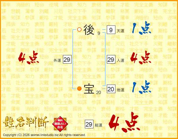 後宝さんの総運は29画の4点!