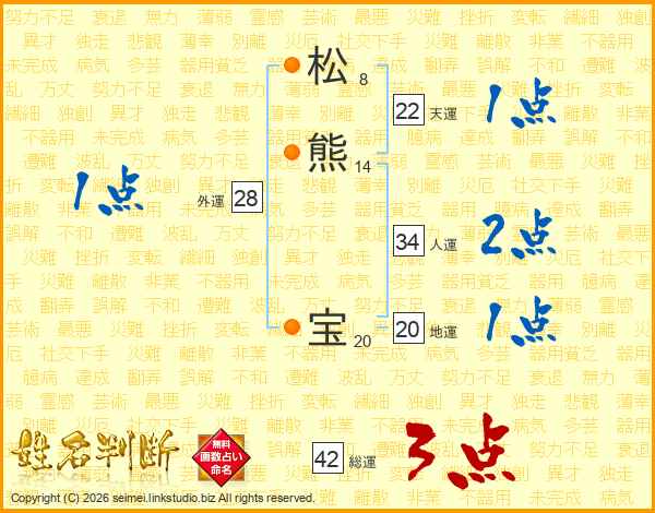 松(8画)熊(14画) 宝(20画)