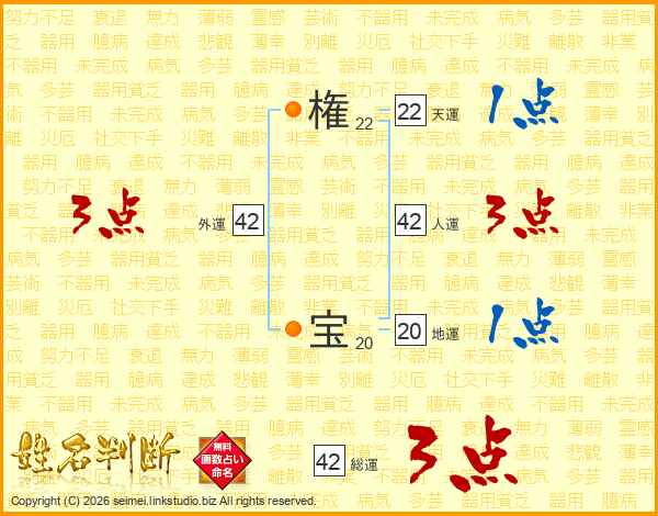 権宝さんの総運は42画の3点!