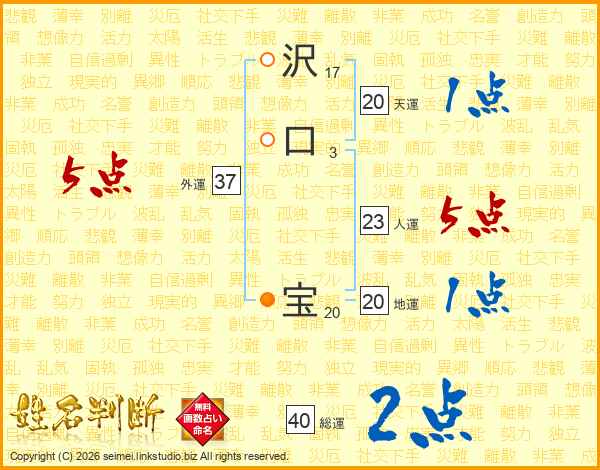 沢口宝さんの外運は37画の5点!