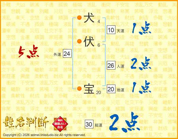 犬伏宝さんの人運は26画の2点!