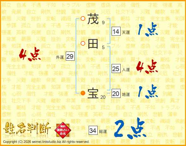 茂田宝さんの人運は25画の4点!
