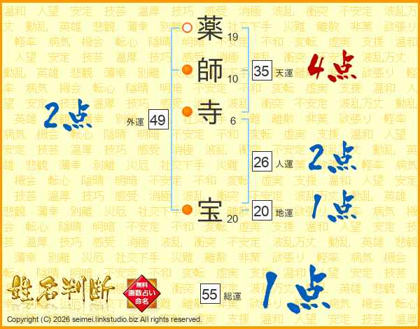 薬師寺宝さんの総運は55画の1点!