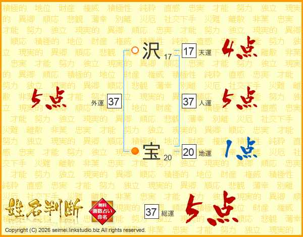 沢宝さんの総運は37画の5点
