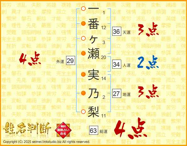 一番ヶ瀬実乃梨さんの総運は63画の4点!