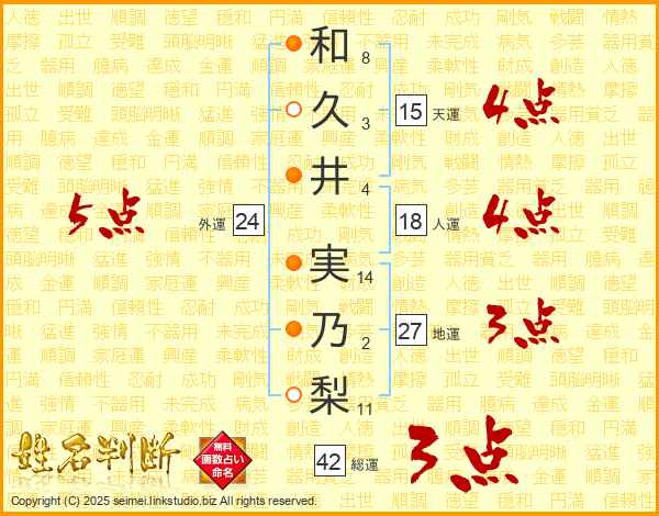 和久井実乃梨さんの外運は24画の5点!