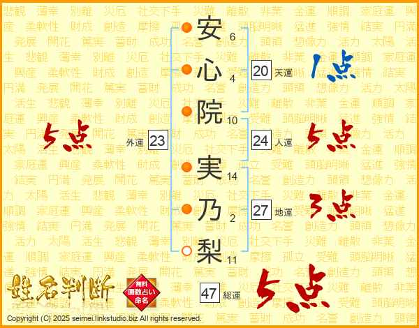 安心院実乃梨さんの総運は47画の5点!