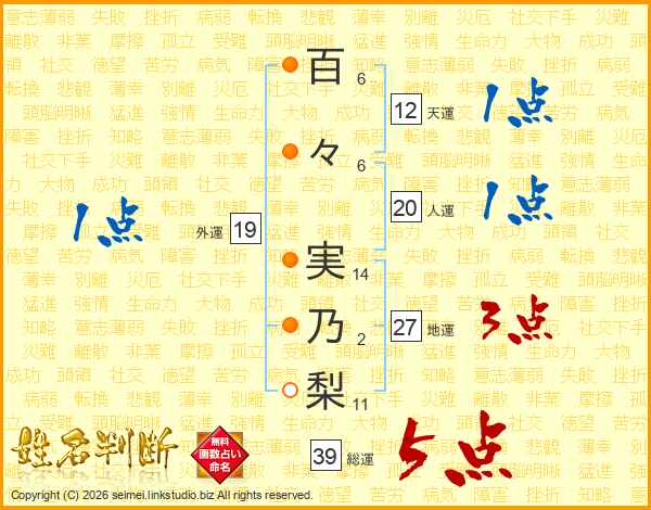 百(6画)々(6画) 実(14画)乃(2画)梨(11画)