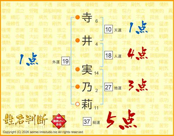寺井実乃莉さんの総運は37画の5点!