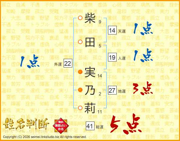 柴田実乃莉さんの総運は41画の5点!