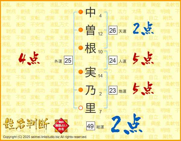 中曽根実乃里さんの外運は25画の4点!