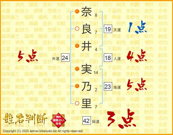 奈(8画)良(7画)井(4画)  実(14画)乃(2画)里(7画)