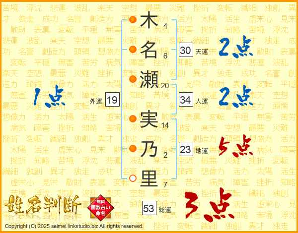 木名瀬実乃里さんの総運は53画の3点!