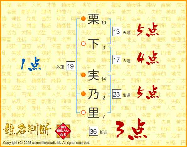 栗(10画)下(3画) 実(14画)乃(2画)里(7画)