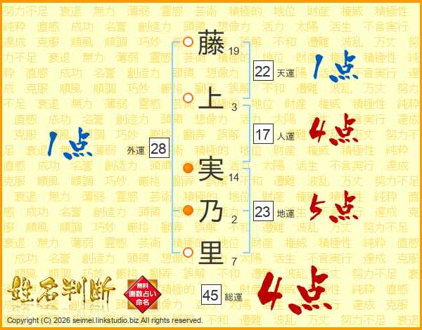 藤上実乃里さんの総運は45画の4点!