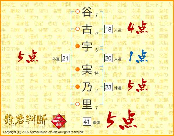 谷古宇実乃里さんの総運は41画の5点!