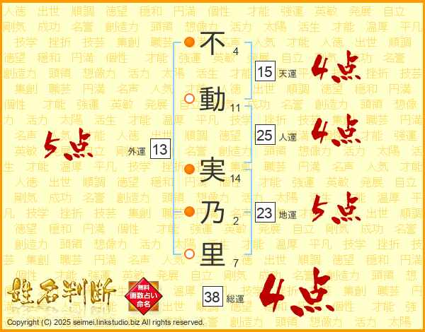 不動実乃里さんの総運は38画の4点