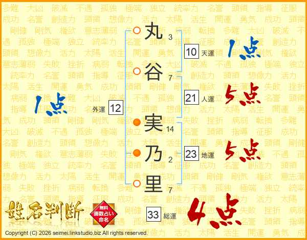 丸谷実乃里さんの総運は33画の4点!