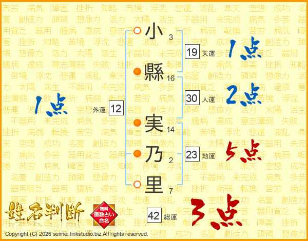 小縣実乃里さんの人運は30画の2点!