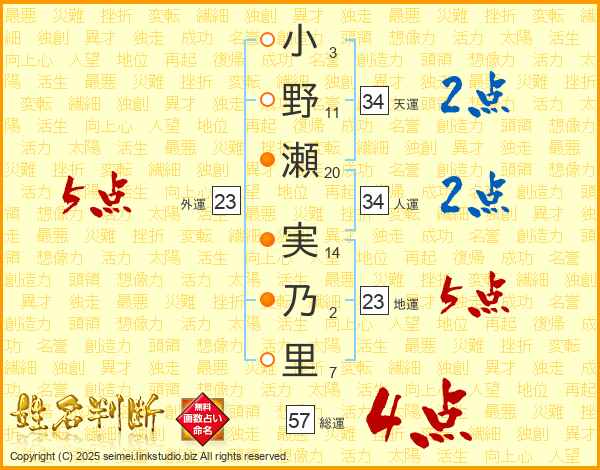小野瀬実乃里さんの総運は57画の4点!
