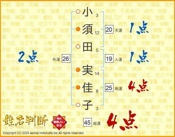 小須田実佳子さんの総運は45画の4点!