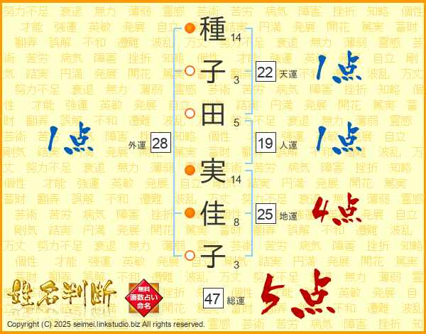 種子田実佳子さんの総運は47画の5点!