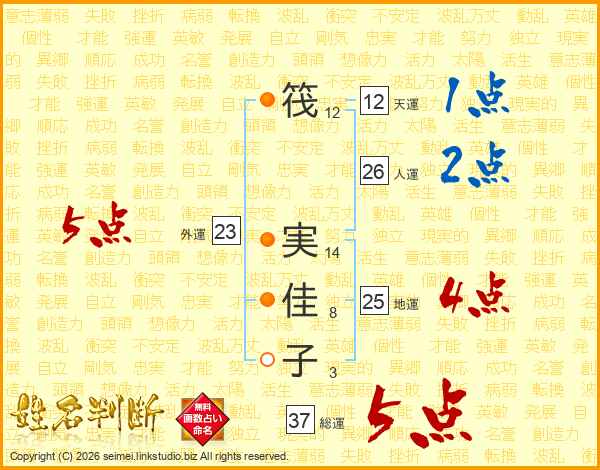 筏実佳子さんの総運は37画の5点!