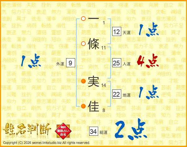画数の奇数(○陽)と偶数(●陰)の配列で吉凶を占います。どちらかにかたよる名前は大凶名で避ける必要があります。画数の奇数偶数。