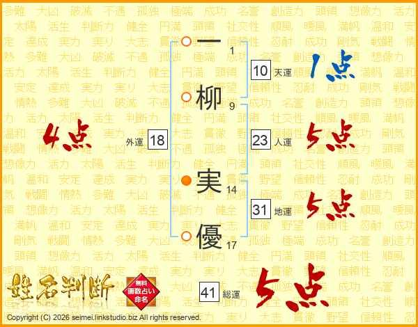 一柳実優さんの外運は18画の4点!