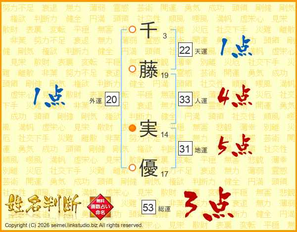 千藤実優さんの人運は33画の4点!