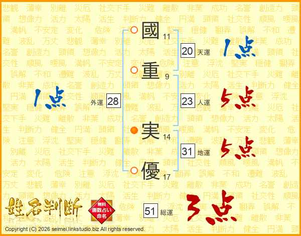國重実優さんの人運は23画の5点!