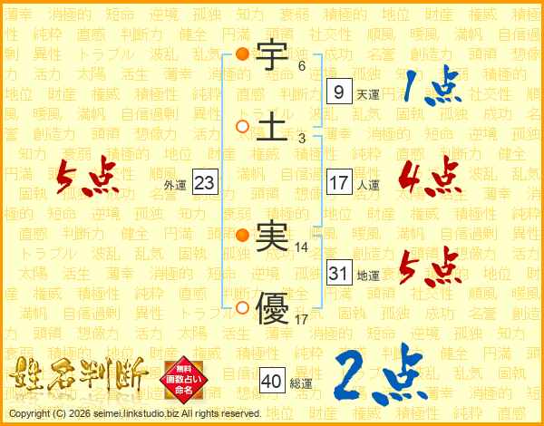 宇土実優さんの外運は23画の5点!