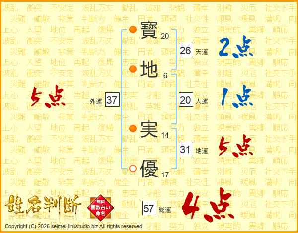 寳地実優さんの天運は26画の2点!