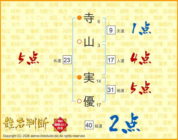 寺(6画)山(3画) 実(14画)優(17画)