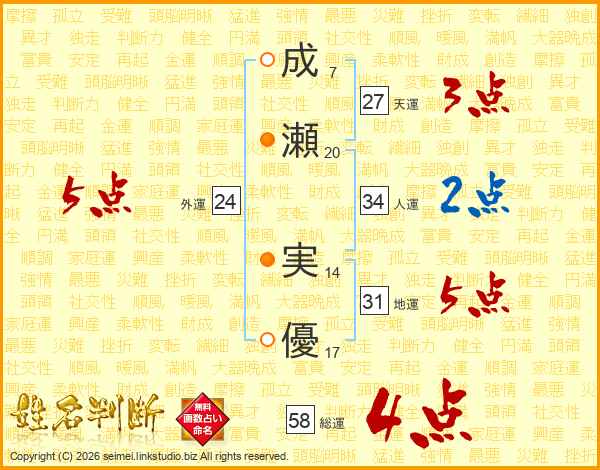 成瀬実優さんの総運は58画の4点!