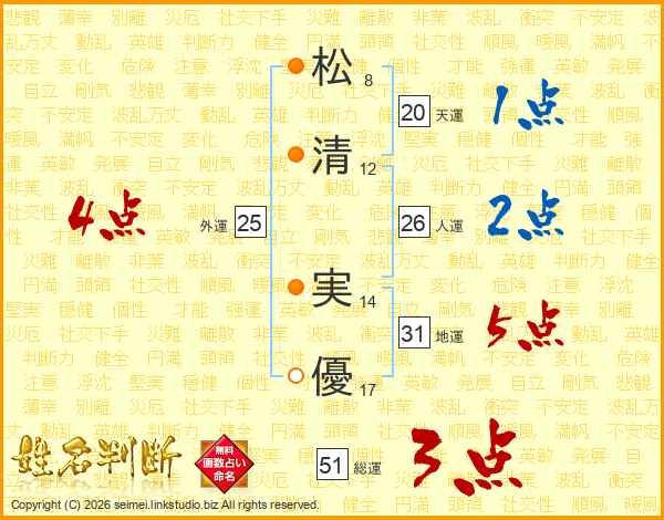 松清実優さんの総運は51画の3点!