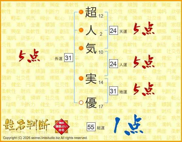 超人気実優さんの人運は24画の5点!