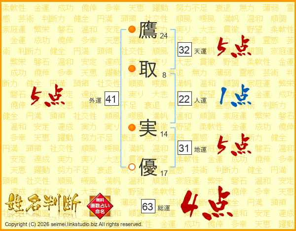 鷹取実優さんの総運は63画の4点!
