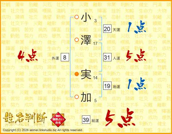 小澤実加さんの総運は39画の5点!