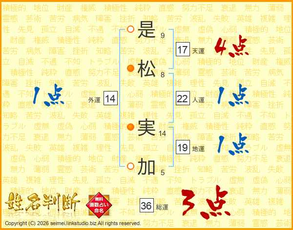 是(9画)松(8画) 実(14画)加(5画)