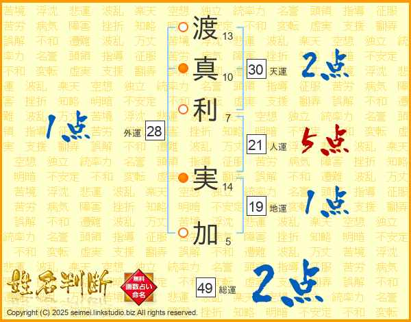 渡真利実加さんの人運は21画の5点!