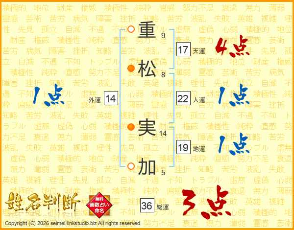 重(9画)松(8画) 実(14画)加(5画)