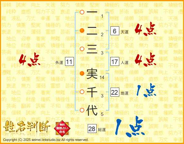 一二三実千代さんの人運は17画の4点!