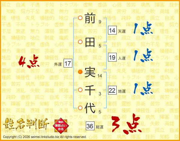 前(9画)田(5画) 実(14画)千(3画)代(5画)