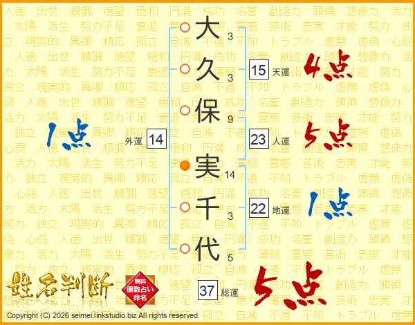 大久保実千代さんの総運は37画の5点!