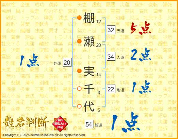 棚瀬実千代さんの人運は34画の2点!